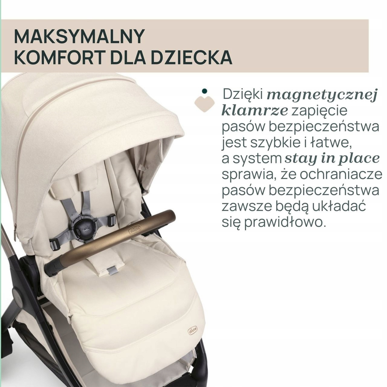 - Cały wózek wzbogacony jest o wysokiej jakości detale: metalową torbę Chicco, odblaskowe zamki i wstawki z powlekanej tkaniny.