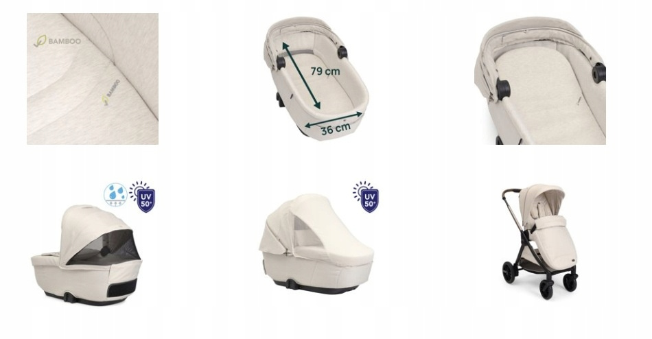 - Tkaniny wewnętrzne wykonane są z naturalnych włókien bambusowych, aby zapewnić miękkość i oddychalność gniazda. Materiał ten szczególnie nadaje się do kontaktu ze skórą dzieci, gdyż pomaga w utrzymaniu prawidłowej temperatury ciała.