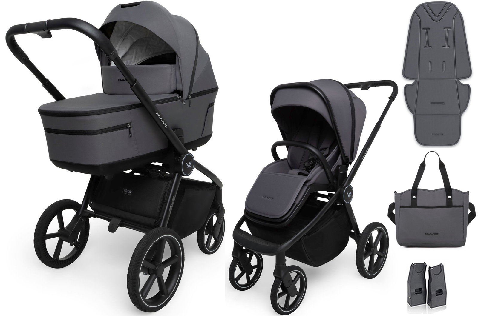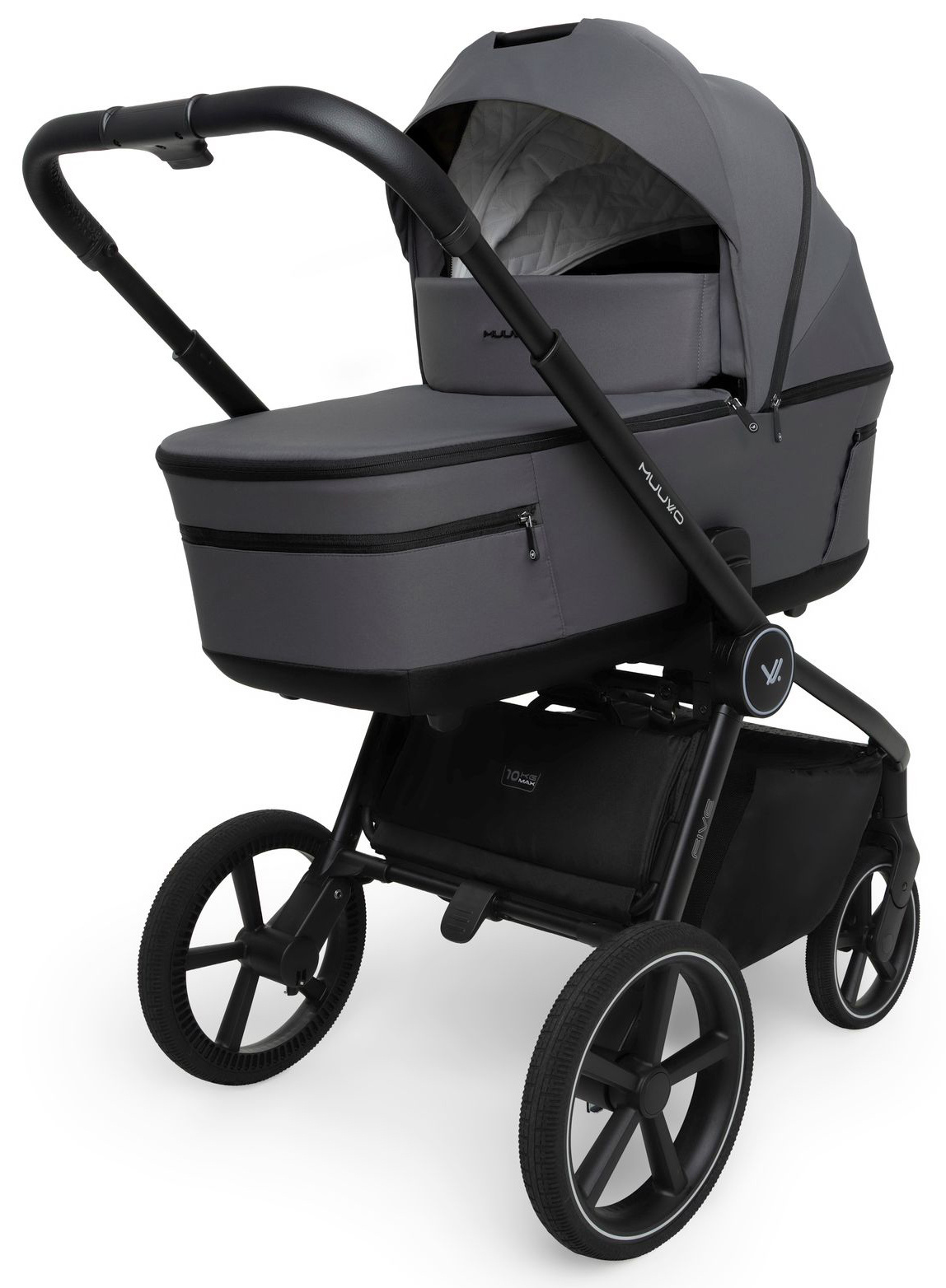 Przedmiotem sprzedaży są fabrycznie nowe wózki 4w1 od Muuvo model Five w kolorze Iron Graphite + Fotel Cybex Cloud G Magic Black + baza Cybex G.